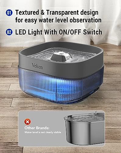 - Practical LED Lighting:The lighted pet water fountain makes it a nightlight allowing you to see water level and avoid kicking over in the dark. There is a switch on the wire to control the light so you could easily turn it on or off.