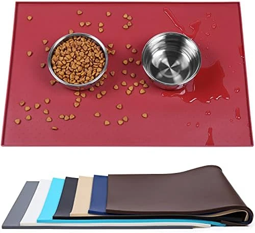 - ❤Perfect Size: 19x12inch Pet feeding mat could easily hold one big bowl or two small bowl; suitable for puppy kitty and other small pets; it clings to the ground very nicely, and it is flexible, just roll it up to store or pack for travel