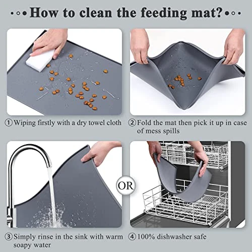 - ❤EASY TO USE & CLEAN : This dog mat for food and water is very easy to clean, simply rinse in the sink with warm soapy water, wipe with a cloth, wash it by hand under the sink or in a dishwasher. If a lot of water was spilt on mat, please kindly wiping firstly with a dry towel cloth. Thus the water would not spilled onto the floor when taking to clean