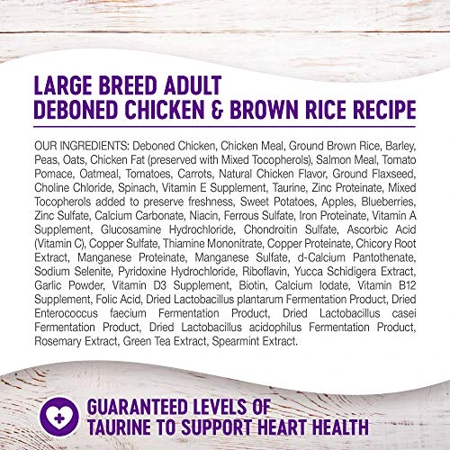 - NO CORN, WHEAT, OR SOY: Adult large breed dry dog food doesn’t contain poultry by-products, wheat, wheat gluten, corn, soy, artificial colors, or preservatives.