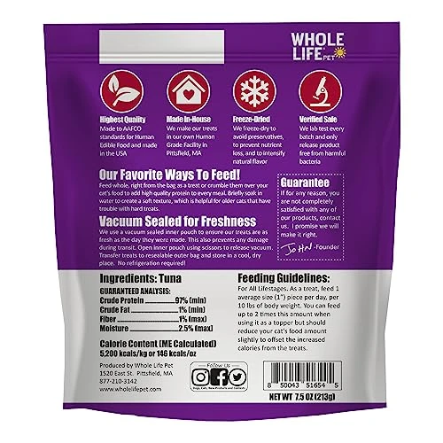 Whole Life Pet Just One Tuna – Cat Treat Or Topper – Human Grade, Freeze Dried, One Ingredient – Protein Rich, Grain Free, Made In The USA, 7.5 Ounce