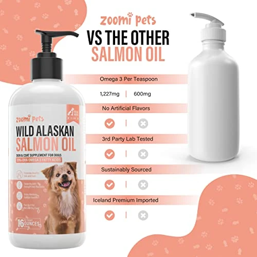 - 🐕 A WAG-WORTHY MEAL ENHANCER: Zoomi Pets Wild Alaskan Salmon oil is the paw-fect addition to raw, wet and dry food with no added artificial flavors. A few pumps of our wild Alaskan salmon oil for dogs and cats mixed with their favorite meal time snacks is all it takes to meet your pet’s omega-3 quota for the day – even if they are picky eaters making it a perfect alternative to capsules, chews and treats.
