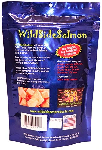 WildSide Salmon – Wild Alaskan Salmon Freeze Dried Cat Treats – Healthy And Organic Cat Food – 3 Ounces (3 Pack)