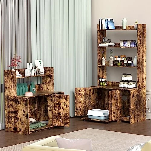 - 🍔【Safe and Stable】The cat litter box furniture is made of high-quality MDF, which has a solid structure and is more stable and durable. Vintage wood accents go well with all interior styles and combine well with other furniture. Every cat owner wants to create the perfect home for their cat, providing a clean environment for pets.