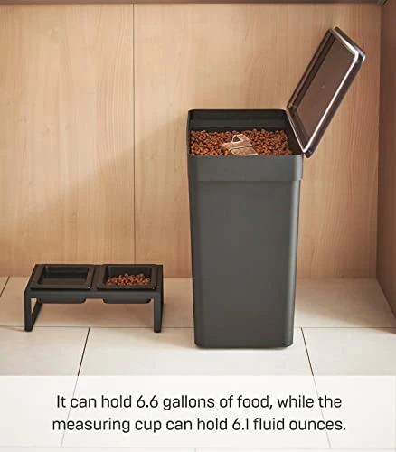 - AIRTIGHT PET FOOD STORAGE: This airtight pet food storage container keeps both you and your dog or cat happy with fresh food in an attractively designed holder.