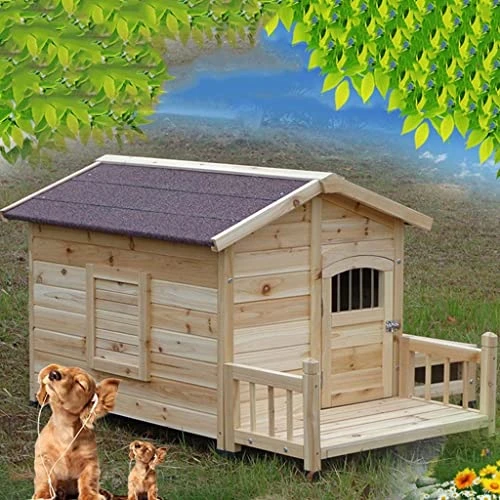 - ★[High-quality material]: Doghouse house for outside is made of high-quality solid wood. The wood is treated with non-toxic, odorless and water-based varnish, which has strong bearing capacity and is durable.